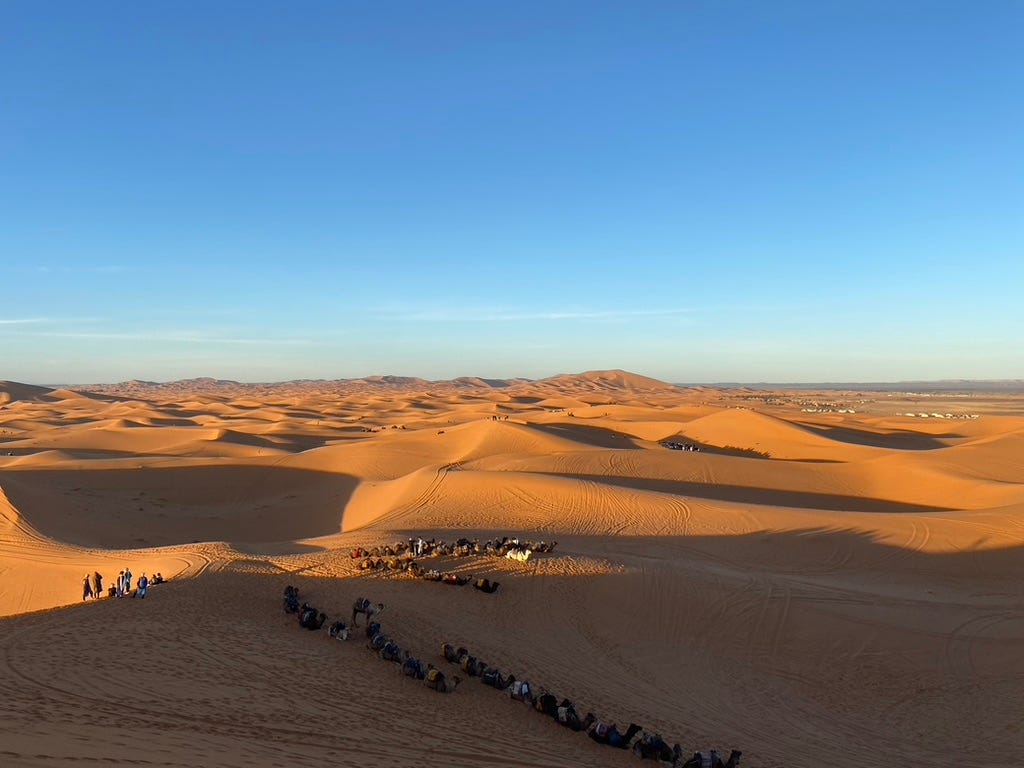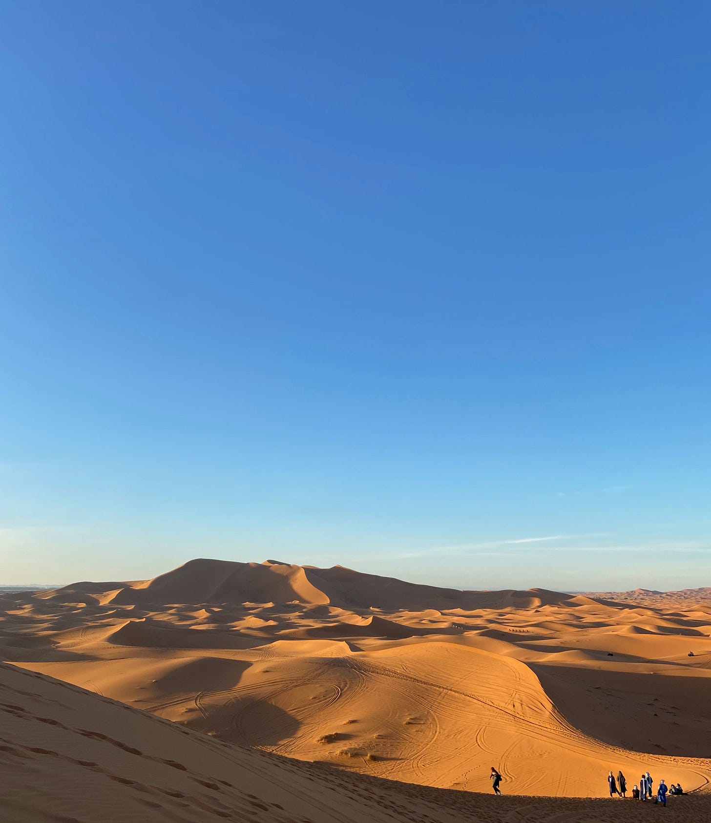 Speaking the language of the stars, I learned about Star dunes of Erg Chebbi, the tallest dunes on Earth. They are characterized by their distinctive branching arms and pointed tops, like a star fish, and are formed by winds that are blown in complex patterns from different directions. The biggest star dune is called Lala Lallia, dating back to the Upper Paleolithic period, 13,000 years ago. It’s 100 meters high and 700 meters wide.