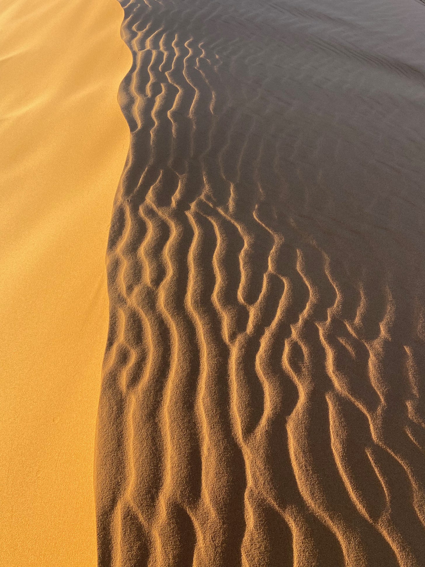 The Sahara’s sand is so very fine. It surprised me with its coolness (it holds the intense cold of the night air).