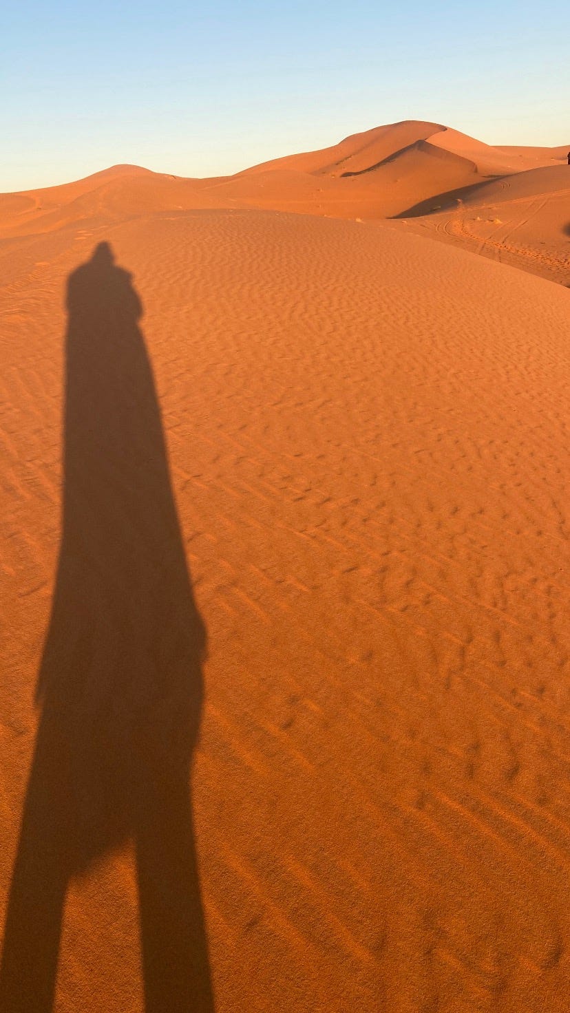 Morocco’s glowing and magnificent warm light illuminates the sands of the Sahara. It transforms everything it touches. Colors become more vivid. My Moroccan shadow behaved very differently than any of my other shadows ever had. As I took photographs, my long dark shadow slid into every one, making itself known. Announcing to me, “Here everything is different. Take note.”